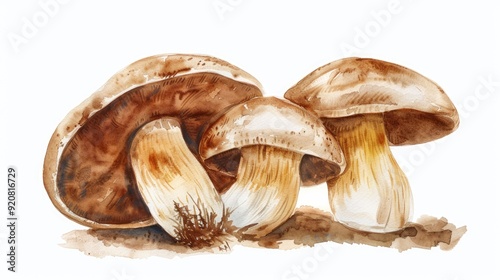 © Yevhen, Fototapeta premium Hand-drawn Watercolor Illustration of Raw Asian Mushrooms on White Background