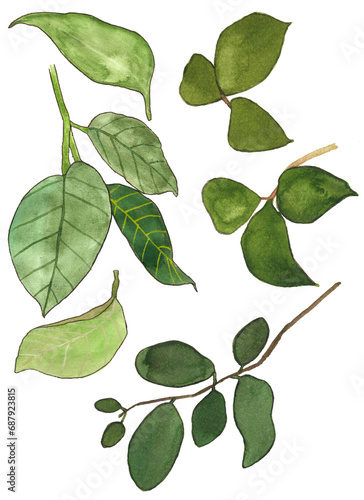 © Svetica Rockstone, Fototapeta premium Hand drawn watercolor leaves set