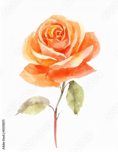 Obraz premium Hand drawn watercolor orange rose flower isolated on white background