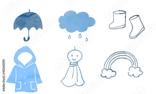 © あらた, Obraz premium Hand drawn watercolor style rainy season illustration