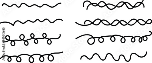 © Articurve, Fototapeta premium Hand drawn wavy divider line set. Curly decorative border vector collection