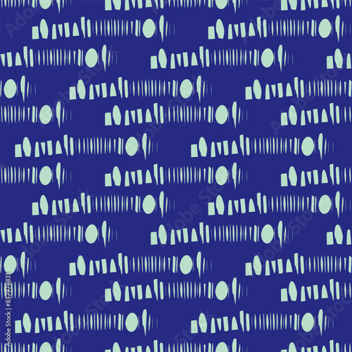 © Gaianami Design, Obraz premium Hand drawn whimsical scribble lines and glitch seamless pattern. Vector painterly textured organic doodle stripe marks background. Playful blue abstract geometric sketchy repeat. Modern all over print