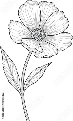 Fototapeta premium Hand drawn white flower illustration isolated on a white background with a simple floral sketch design