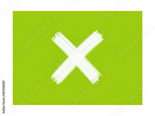 © Muaz, Obraz premium Hand drawn white x mark on bright green background, symbol of rejection or error