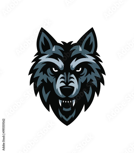 © designernayem70, Fototapeta premium Hand drawn wolf head silhouette mascot logo design
