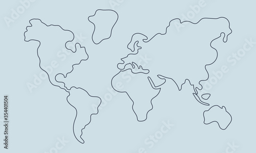© NK, Obraz premium Hand drawn World map. Isolated world map. Vector illustration.