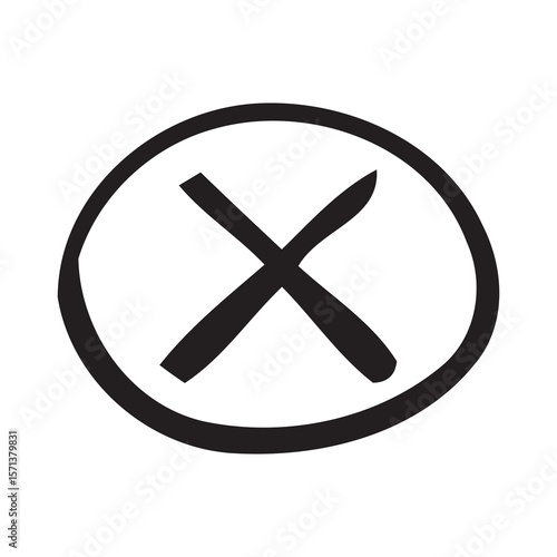 © Noy, Fototapeta premium Hand-drawn X in Circle; Negative, Rejection, Cancellation Symbol; Dark, Minimalist Design.