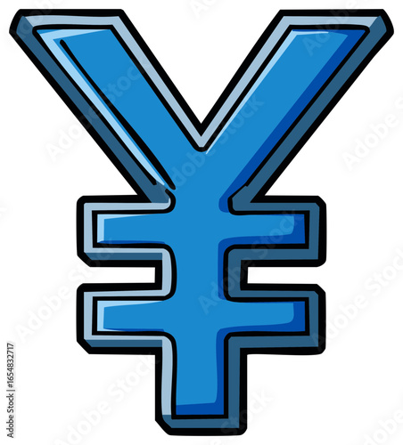 © Мария Лесь-Лисецкая, Obraz premium Hand Drawn Yen Sign in Blue Isolated on White Background Money Symbol