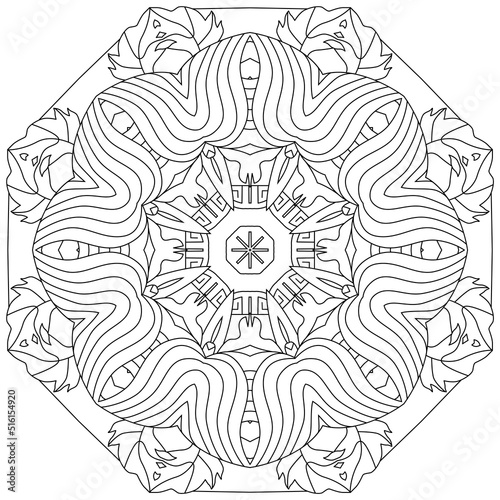 © Andreichenko, Fototapeta premium Hand drawn zentangle circular ornament for coloring page.