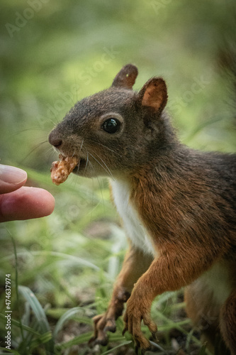 © Barbara C, Obraz premium hand feeding cute and curious squirrel
