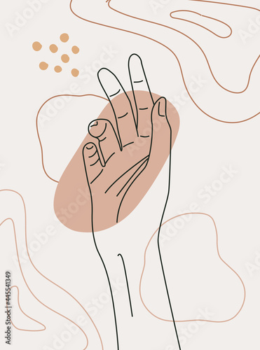 Obraz premium Hand gesture boho style wall art decor. Creative minimalist hand draw abstract art . Modern illustrations. Bohemian style