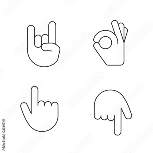 Obraz premium Hand gesture emojis linear icons set