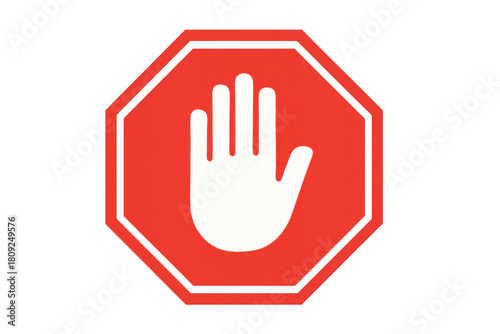 © Michael, Obraz premium Hand gesture forming stop symbol within a red octagon, indicating halt, warning, and no entry, transparent background