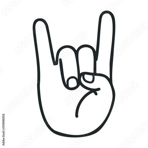 © Sophia, Obraz premium Hand gesture line drawing with rock on sign in black and white style. Vector illustration