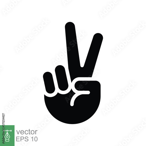 © Fourdoty, Obraz premium Hand gesture V sign for victory or peace glyph icon. Simple solid style for apps and websites. Vector illustration on white background. EPS 10.