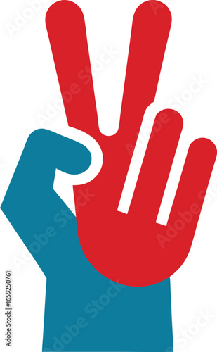 Obraz premium Hand gesture v sign for victory or peace line art vector icon for apps and websites