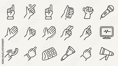 Fototapeta premium Hand gestures and communication icons vector set for presentation and user interface design assets
