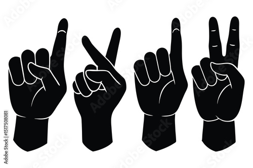 Obraz premium Hand Gestures Counting One Two in a Row Silhouette row hand gestures counting one and two depicted clean