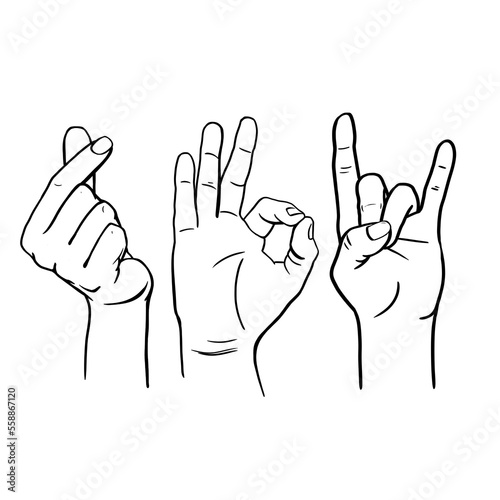 © Kateryna, Fototapeta premium Hand gestures, drawing set, black and white illustration