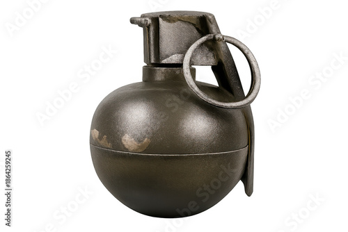 © PNG Kingdom , Naklejka premium Hand grenade, explosive military weapon, representing conflict, danger, and war, with safety pin and pull ring
