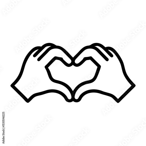 Fototapeta premium Hand Heart Icon Outline – Love Gesture Symbol Line Art Illustration