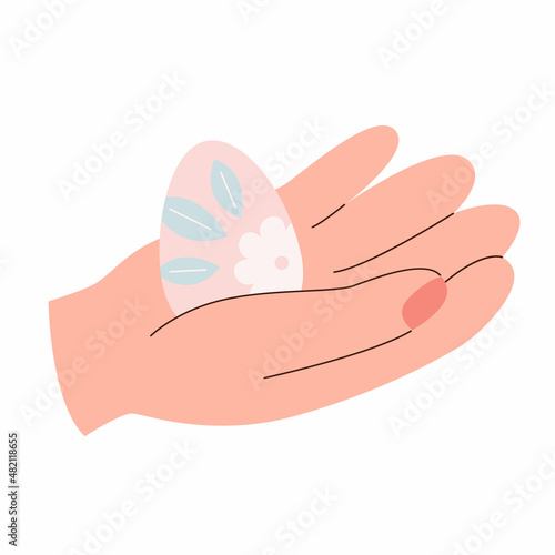 © hola.lena, Obraz premium Hand hold easter egg on white background