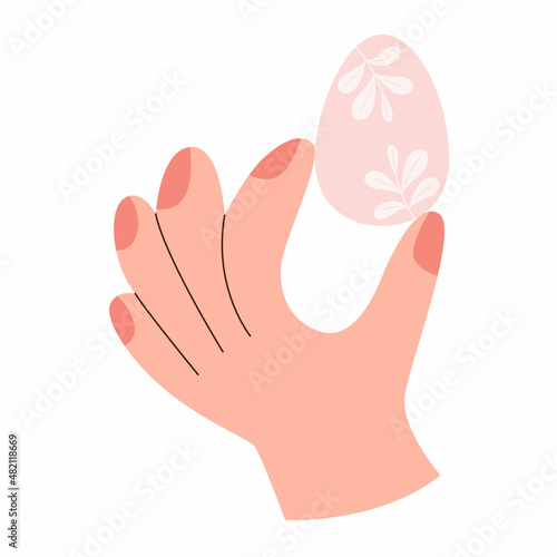 © hola.lena, Fototapeta premium Hand hold easter egg on white background