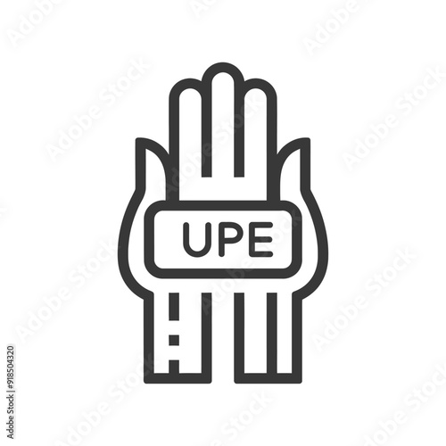 © NikahGeh, Obraz premium Hand Holding a Device with UPE Label