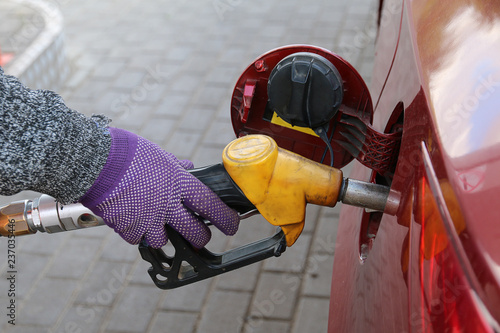 © yakowiric1959, Fototapeta premium Hand holding a gasoline feed gun