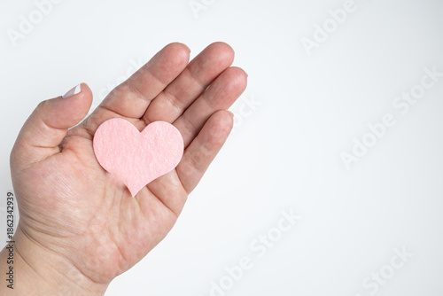 © Maribel, Obraz premium Hand holding a heart. Breast cancer prevention concept