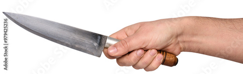 © DR Moura, Obraz premium Hand holding a knife with a wooden handle used for cutting barbecue.
