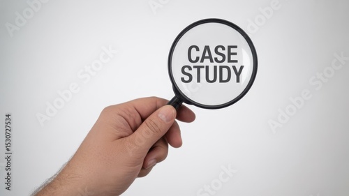 Fototapeta premium Hand holding a magnifying glass with the words "case study" displayed.