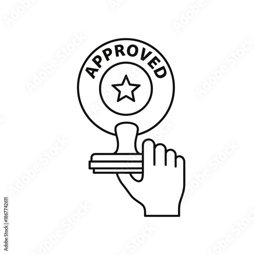 © Jabrig, Obraz premium Hand Holding Approved Stamp Icon for Certification and Validation