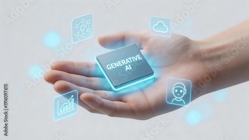 © Joseph, Fototapeta premium Hand holding chip with generative AI