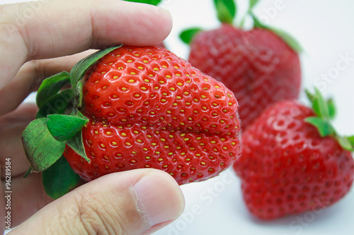 © Kwangmoozaa, Obraz premium hand holding fresh strawberries