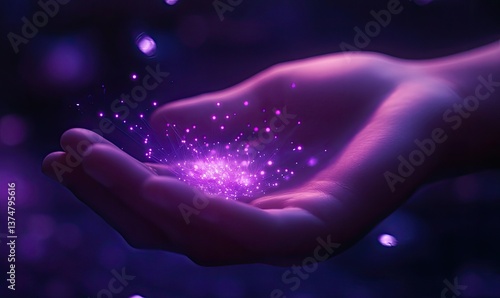 © Aini, Obraz premium Hand holding glowing particles (1)