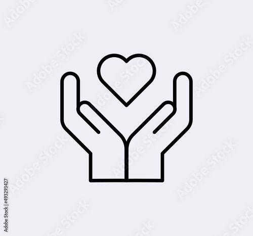 Obraz premium Hand holding heart vector line icon.