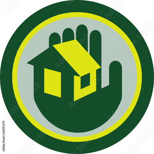 Obraz premium Hand Holding House Circle Retro