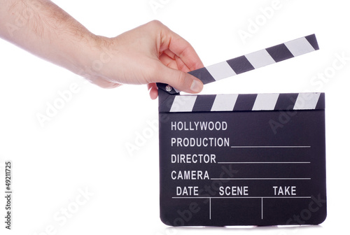 © Chris Brignell, Fototapeta premium Hand holding movie clapper board cutout