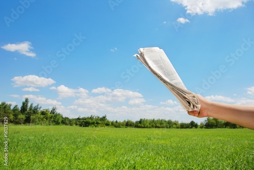 © Lily, Fototapeta premium hand holding newspaper at outdoor