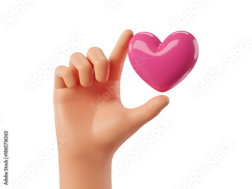 Obraz premium Hand holding pink heart emoji isolated on transparent background