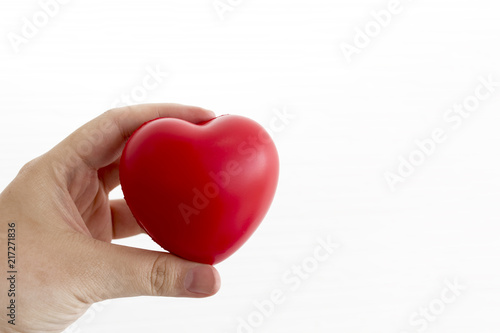 © Suthiporn, Fototapeta premium Hand holding red heart model on white background.Copy space.