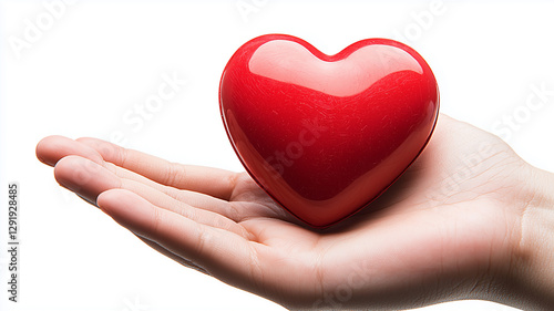 © Rosi, Fototapeta premium Hand Holding Red Heart on White Background