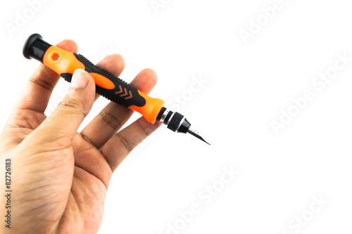 © Jiranat-K, Naklejka premium hand holding screwdriver isolated