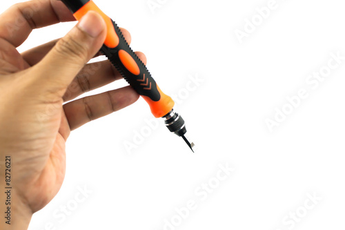 © Jiranat-K, Naklejka premium hand holding screwdriver isolated
