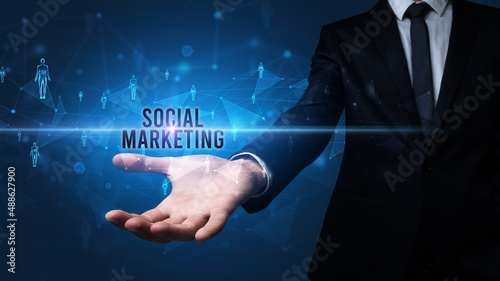 © ra2 studio, Fototapeta premium Hand holding social media related inscription