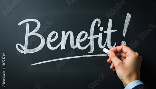 Fototapeta premium Hand holding white chalk writing Benefit.
