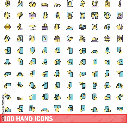 Fototapeta premium 100 hand icons set. Color line set of hand vector icons thin line color flat...