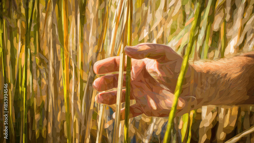 © Vibu design gallery, Fototapeta premium Hand in Field of Wheat