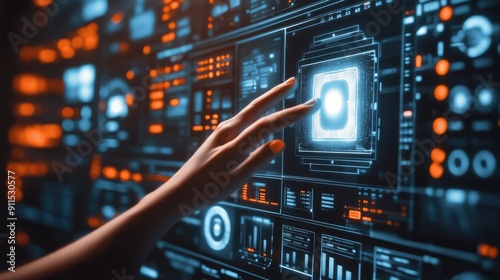 Obraz premium hand is touching hologram screen